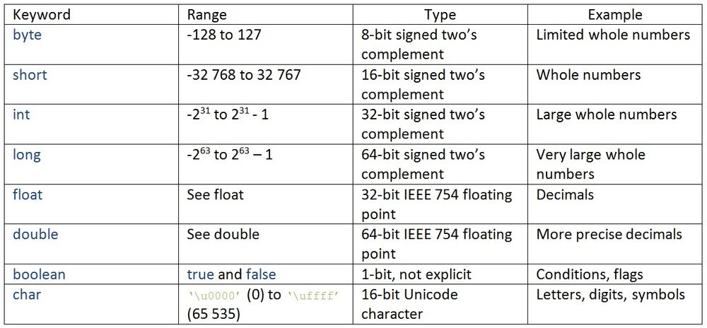Figura 2 Los tipos de datos primitivos dan contexto a las variables. Tomado de Variables Java.#